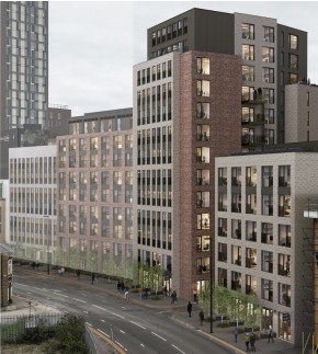 Approaching the city centre the next development that has planning approval subject to completion of a section 106 agreement is Trade Street Gardens, that's 245 rental apartments, pretty much replacing sussex house. That's a 12 storey structure at it's tallest, an empty Sussex house is still standing at the site with no sign of any demolition? whether this development proceeds - who knows! But if it is going to be built then surely we'll see something happening on site during 2026
